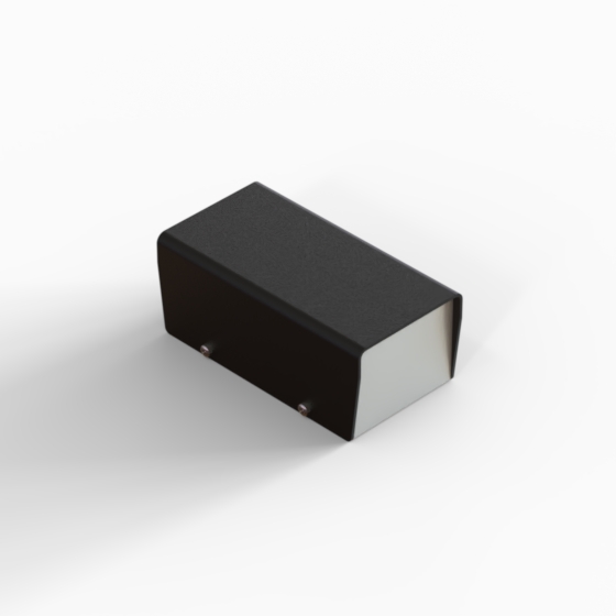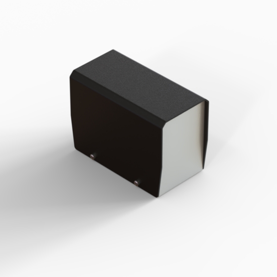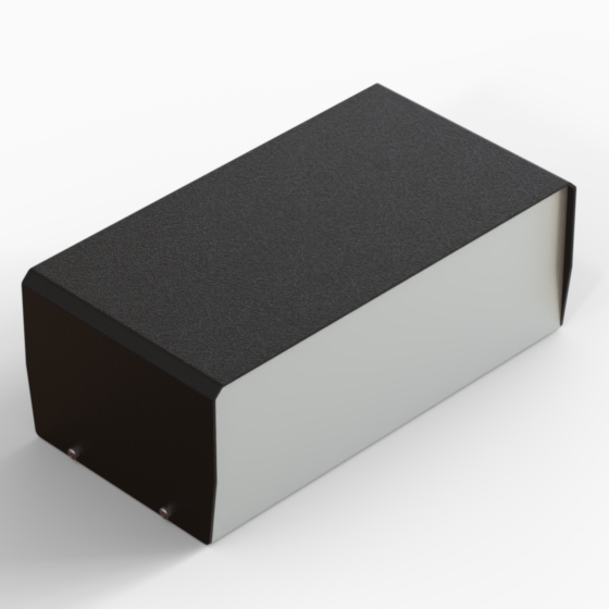 Aluminiumgehäuse mit silberfarbenen Unterteil und schwarzem Deckel. Einfache und schnelle Montage durch vier Schrauben.