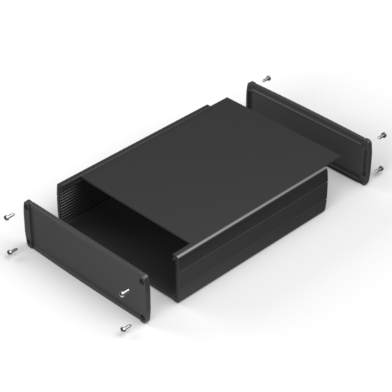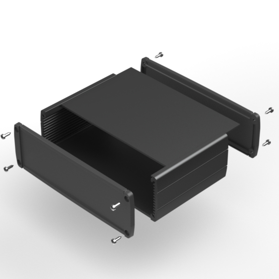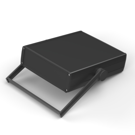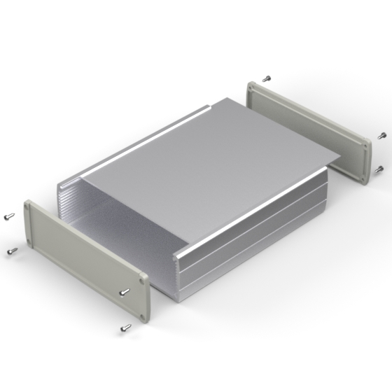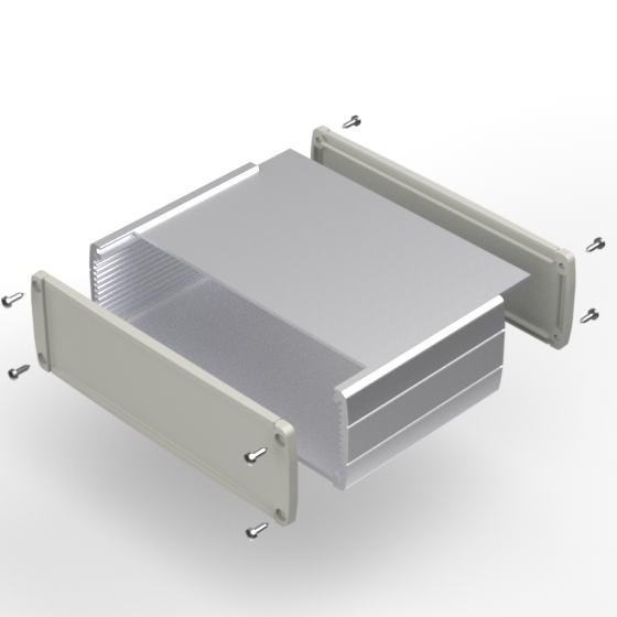 Profilgehäuse aus eloxiertem Aluminium mit qualitativ hochwertiger Oberflächelackierung. Verschiebbarem Oberdeckel. Zwei ABS –Abschlußdeckel, integrierte Führungsrippen für PCB. Die Modelle mit „-H“ haben einen ergonomischen Griff in acht Positionen einstellbar. Zwei verschiedene Längen zur Verfügung. Montage mit acht Schrauben.