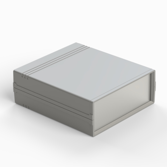Kunststoffgehäuse mit Fach für 9V-Batterie in der Rückwand. Jede Hälfte hat integrierte Führungen und Montagepfeiler für PCB. Matte Oberfläche. Montage mit nur 2 Schrauben. Auch mit hellgrauen ABS (Farbenkod .13) erhältlich. Version mit Plastikplatte: 011P-B, 012P-B, 022P-B, 222P-B, 223P-B, 233P-B.