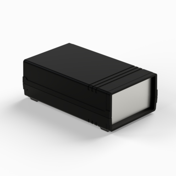 Kunststoffgehäuse mit zwei 1 mm starken Deckplatten aus Aluminium. Jede Hälfte hat integrierte Führungen und Montagepfeiler für PCB. Matte Oberfläche. Montage mit nur 2 Schrauben. Mit Plastikplatten erhältlich (Mod. PPD1. PPD2, PPD3).