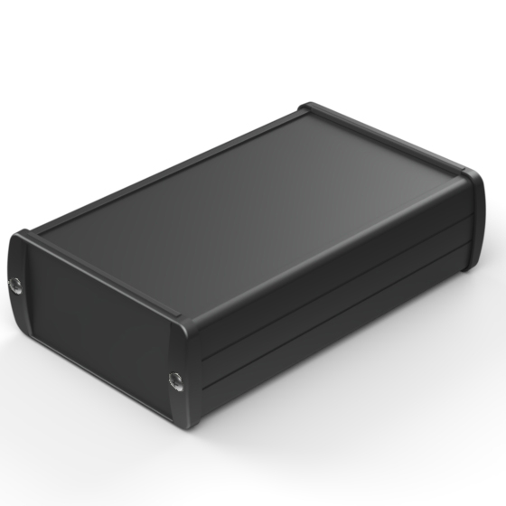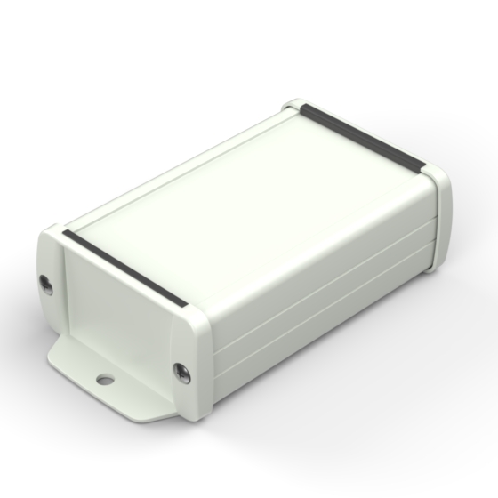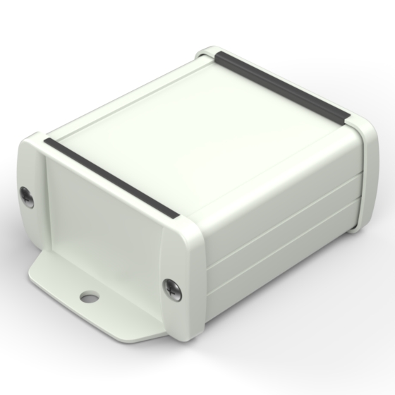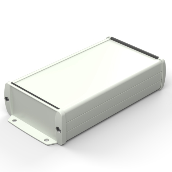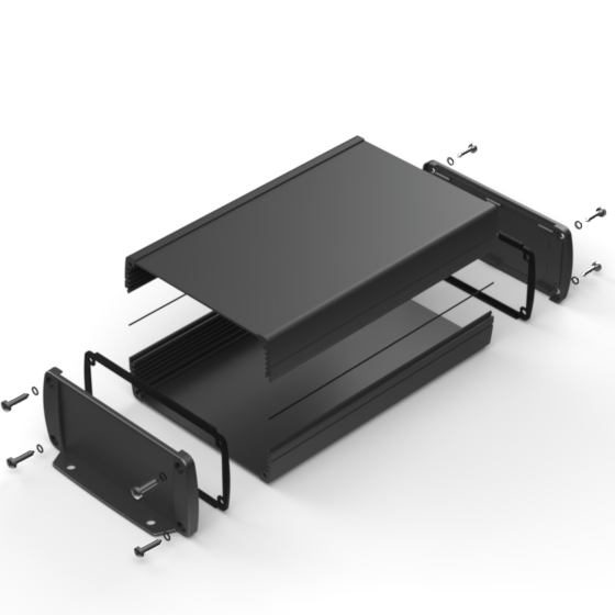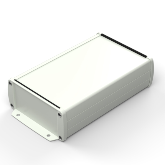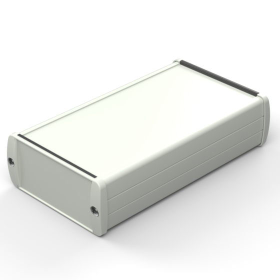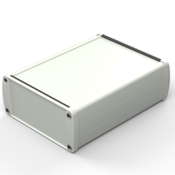 Extruded aluminium case with powder coating and two rubber sealing kits to protect against water and from dust (IP65) available in six different colours. Two metal front panels, internal slots for PCB’s and a recessed area for a keypad membrane. The models with “E” have mounting wall metal panels. Closing by four or eight screws.
