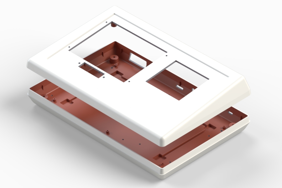 Boîtier en ABS avec partie supérieure inclinée. Les parties inférieure et supérieure sont munies de guides et de plots pour la fixation d’un circuit imprimé. Les modèles «PRO96» et «PRO96K» présentent la partie supérieure avec un décrochement de 1 mm pour y placer un clavier à membrane ou un panneau en aluminium. Le modèle «PRO96K» est fourni avec jeu de joint IP65. Surface opaque. Montage par quatre vis. Livrable sur demande, panneau en aluminium (Mod. AP96).